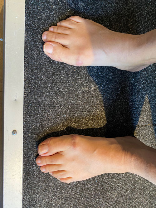 Deze voeten moesten in de smaller gemaakt binnenschoen, met als gevolg pijn in het teen gedeelte. Oplossing juist passende skischoenen!